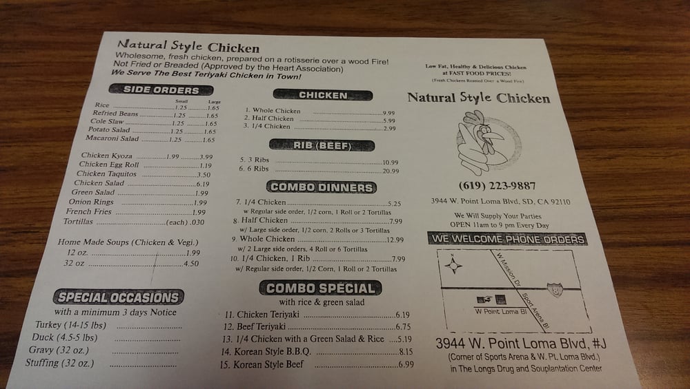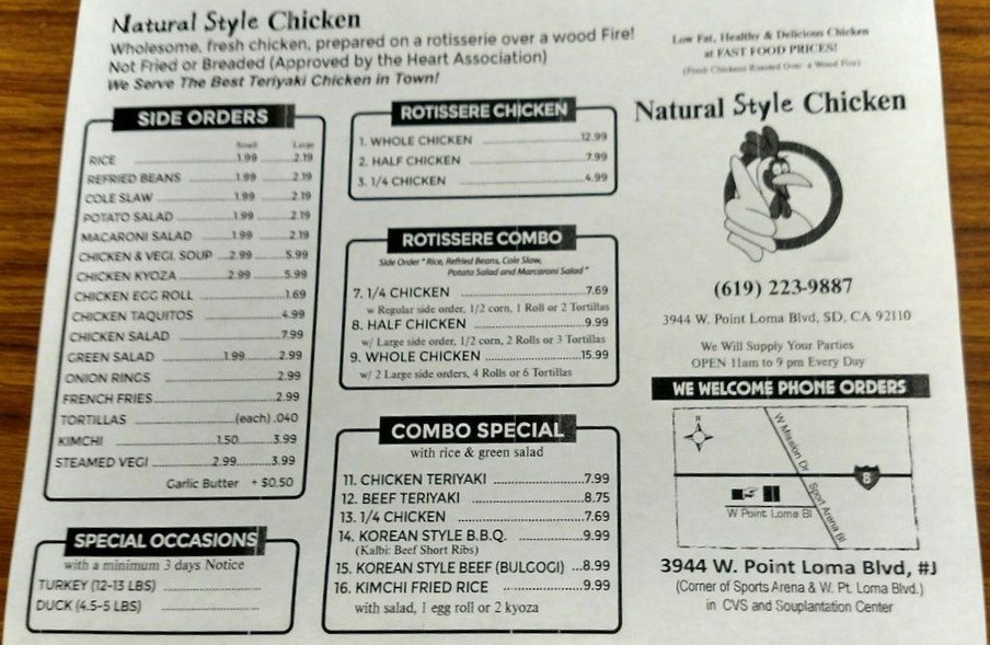 Natural Style Chicken is a barbecue and sandwich joint located in San Diego, CA. Offering a variety of combo specials, rotisserie chicken options, and a cozy atmosphere, this spot is a crowd pleaser. Customers rave about the delicious chicken teriyaki, generous portions, and affordable prices. The service is efficient, with friendly staff ready to assist. The menu features limited vegetarian options but focuses on mouth-watering chicken dishes. With options for delivery, takeout, and catering, Natural Style Chicken is perfect for a quick lunch or a group dinner. Overall, if you're in the area and craving some amazing chicken, this place is a must-try. With great food, large portions, and reasonable prices, it's no wonder why customers keep coming back for more.